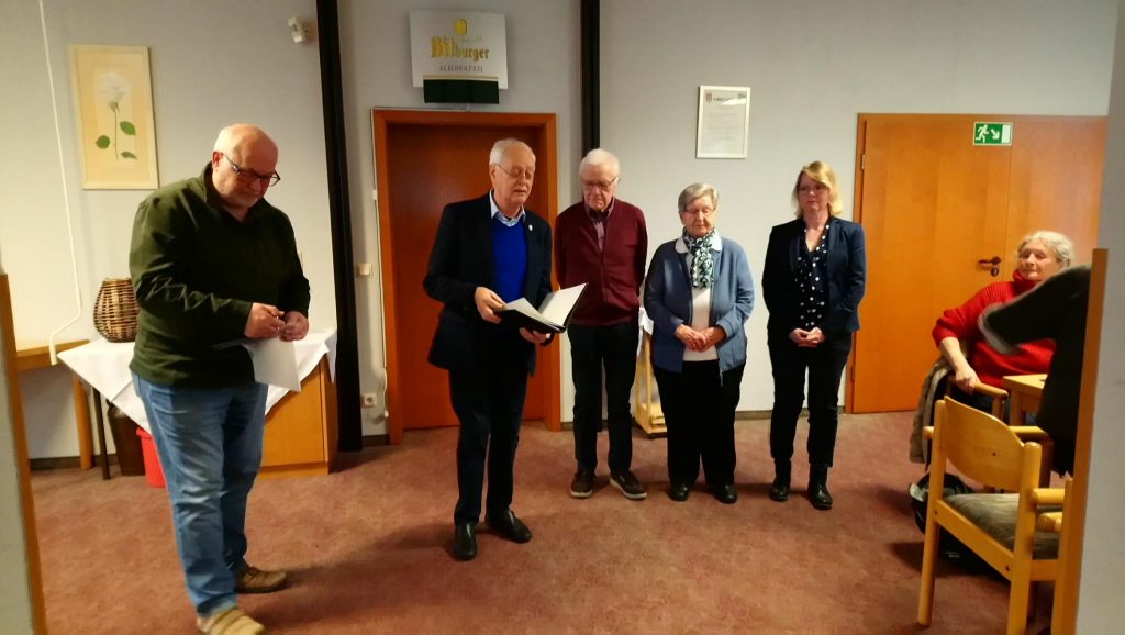Die Geehrten nehmen stolz den Applaus der Versammlungsmitglieder entgegen