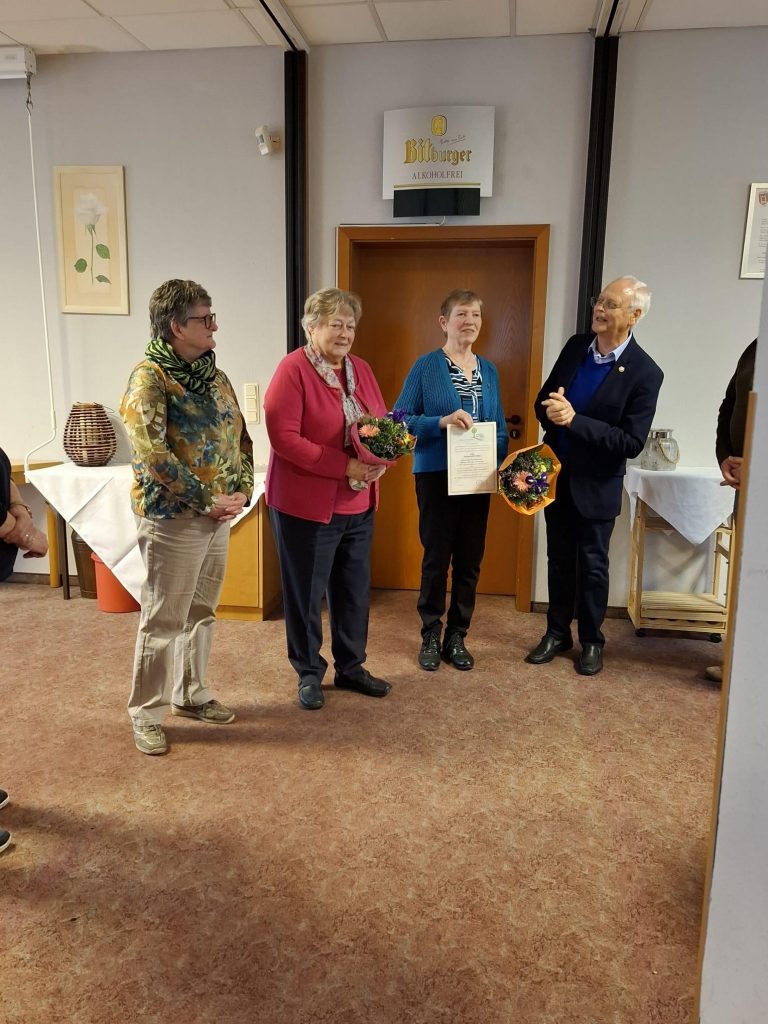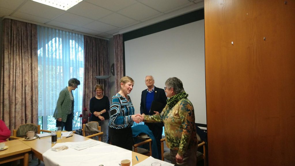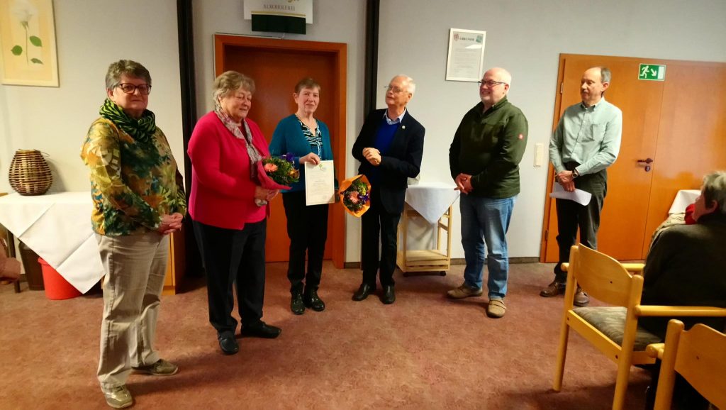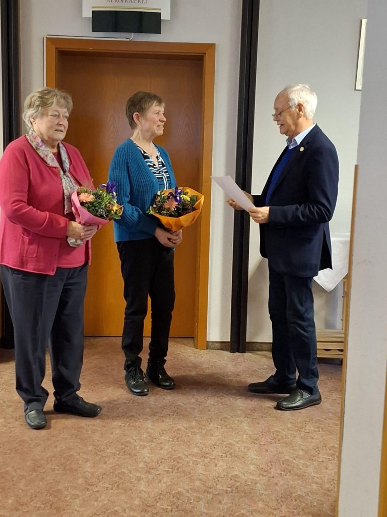 Die scheidende Vorsitzende Margaretha Kilian übergibt den Staffelstab an Ihre Nachfolgerin Angelika Traut.